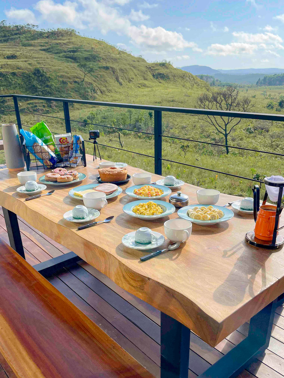 Seja para tomar um café da manhã nas primeiras horas do dia ou desfrutar de um momento especial sob as incontáveis estrelas do único e maravilhoso céu da Chapada dos Veadeiros, nossa varanda/deck é o local onde toda turma se reúne para conversar, rir e viver momentos memoráveis.